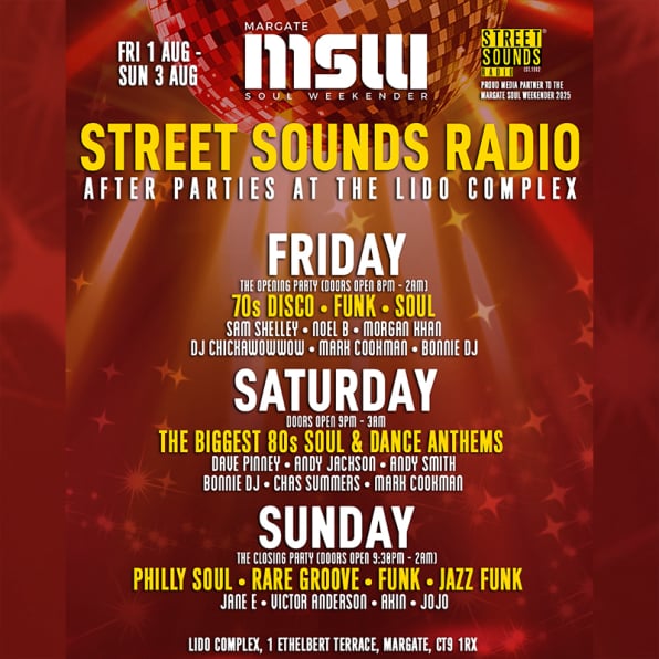 Street Sounds Radio are proud to be the official media partner of this 24 year event and will be hosting the After-Parties at the Lido Complex on Friday, Saturday & Sunday.